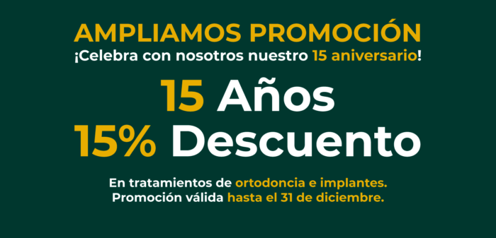 diciembre 11, 2025 8:23 amEste 2025 ha sido un año muy especial para todos nosotros en Clínica Dental Jaén. Celebramos 15 años cuidando de las sonrisas de nuestros pacientes y, como parte de esta celebración, quisimos ofrecer un regalo a quienes confían en nuestro equipo: un 15% de descuento en tratamientos de implantología y ortodoncia invisible hasta el 31 de diciembre. Ha sido una manera de agradecer todo el apoyo recibido a lo largo de estos años y de invitar a más personas a descubrir cómo podemos transformar su sonrisa.